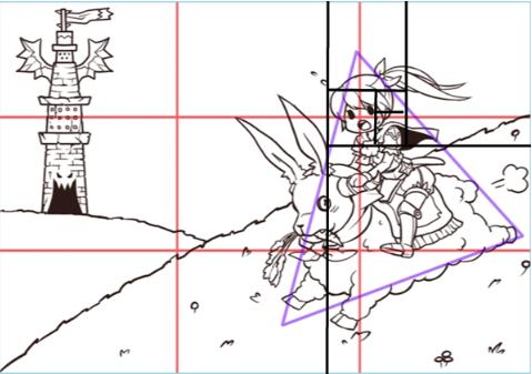 中世纪绘画中使用的相同方法实际上以黄金比例描绘了“蒙娜·丽莎”。 在人物插图中使用黄金分割率的示例我将黄金分割比例应用于三分法中使用的插图。 黄金分割率接近上述的三分法。 得出黄金分割率需要大量的工作,但是您绝对应该尝试这项技术。 让我们记住作为插画家的基础知识。