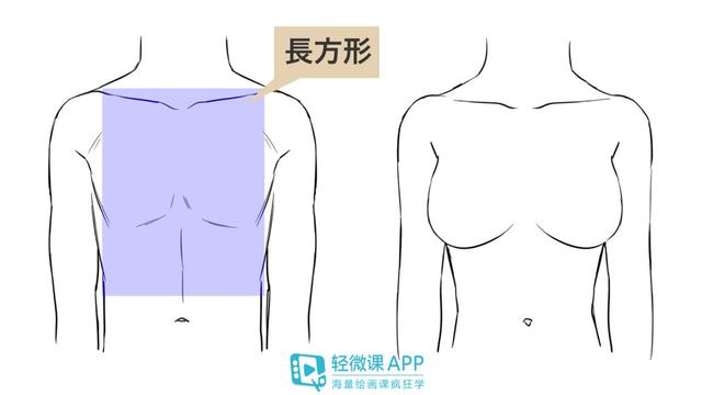 和女性相比没有腰部变细的轮廓,整体的剪影像一个长方形。