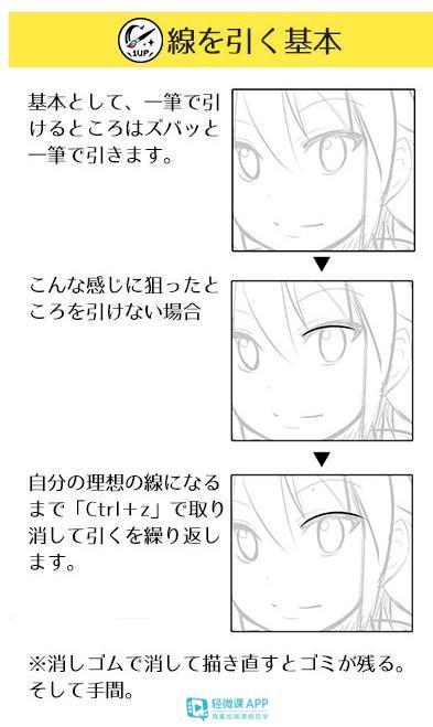 可以用单条线绘制的零件,让我们一口气绘制而不必担心失败!无效的部分用橡皮擦擦除,Ctrl + z”(重做* 按住键盘上的[Ctrl]键并按[z]键充分利用)并重复直到画出理想的线为止。 在使用橡皮擦擦除和添加的校正方法中,可以不擦除橡皮擦,也可以创建线条的接缝,相反,它距离优美的线条较远,因此可以尽可能多地完成一个笔画让我们立刻拉。 理想情况下,可以画一条短线的眼皮,一旦习惯了,就可以画一条线直到头发的中风。与其试图整洁地描绘出粗糙的图形,不如像参考一样画一条线。 应绘制两条曲线以连接直线! 带有椭圆曲线的形状(例如椭圆形)很难徒手精确绘制。在这种情况下,还有一种绘图和连接方法,您可以从此处进行绘图,而不必担心用单条线进行绘图。 “眼睛”通常是椭圆形的,因此我们以它为例。