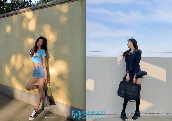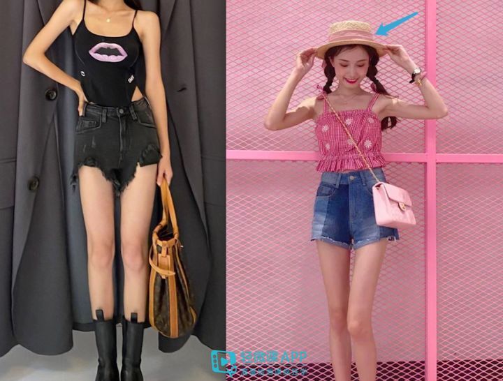 那么除了上面有的温柔/文艺的连衣裙,当然也有下左图这种帅气又不失俏皮和一点性感的吊带热裤搭配: