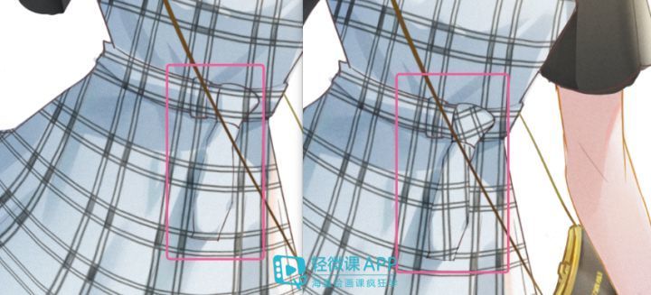 *Tips~:画格子图案的时候,像这种腰带部分,最好分别区分一下方向,就能感觉更加真实: