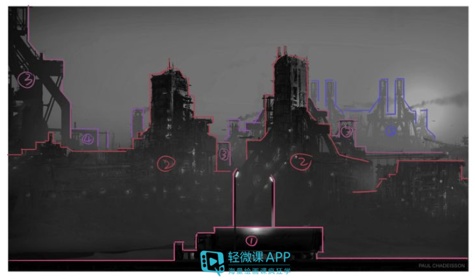 2. 空间方面:对画面建立清晰前后层次,注意物体边缘、笔触感、构图疏密、黑白对比等不同方面对比关系的处理。  艺术家Paul Chadeissoncai作品