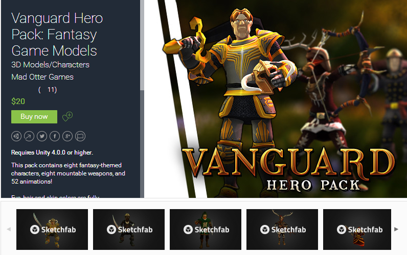 Vanguard Hero Pack Fantasy Game Models v1.2.unitypackage 已购买