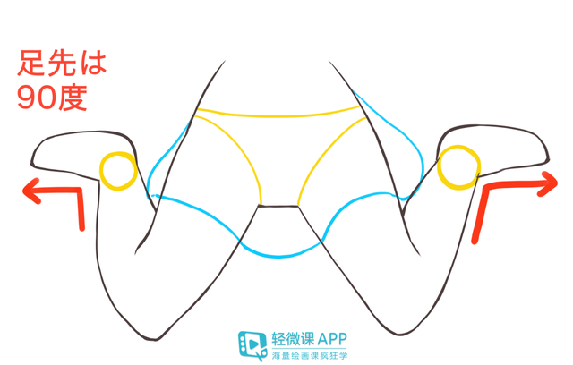 从正面角度看,形状为字母“W”,脚掌和脚踝成90°,会比较自然。