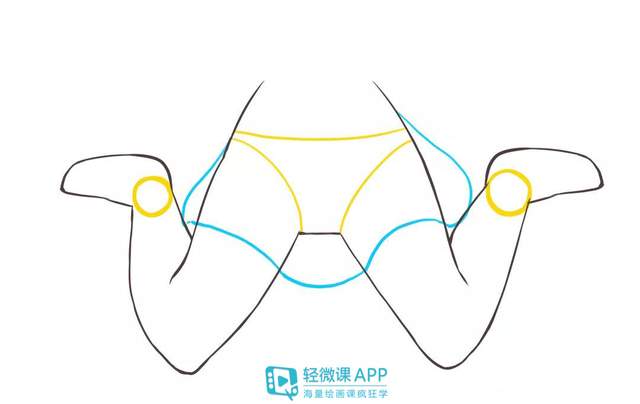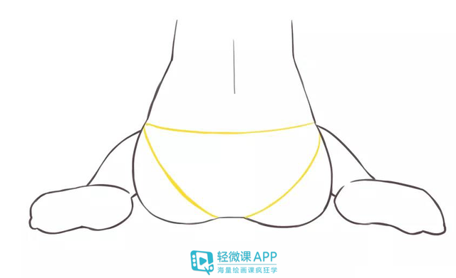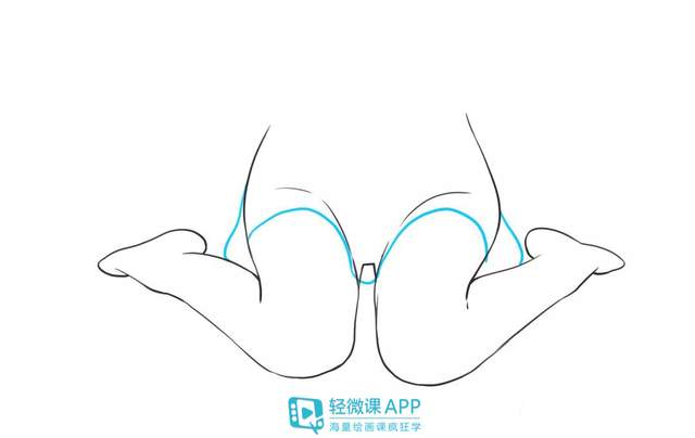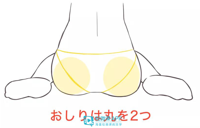 屁股想象成两个圆,能帮助理解和绘画。脚底在这面是可见的。当然了,露出胖次固然好看,但很多时候是违规的,所以你需要一条裙子: