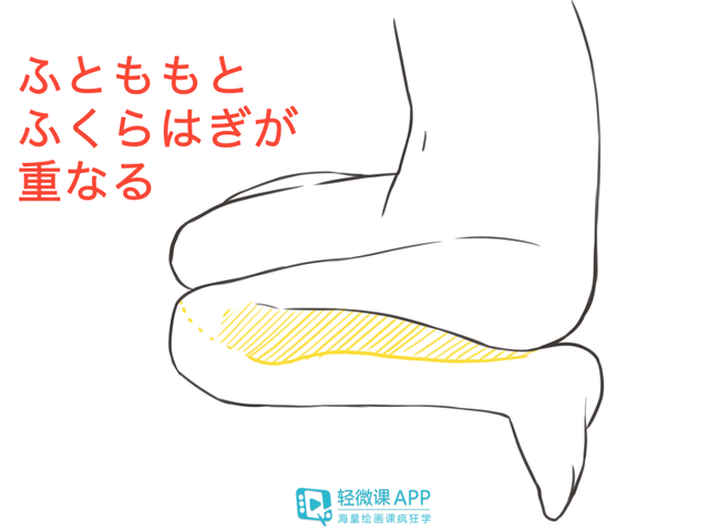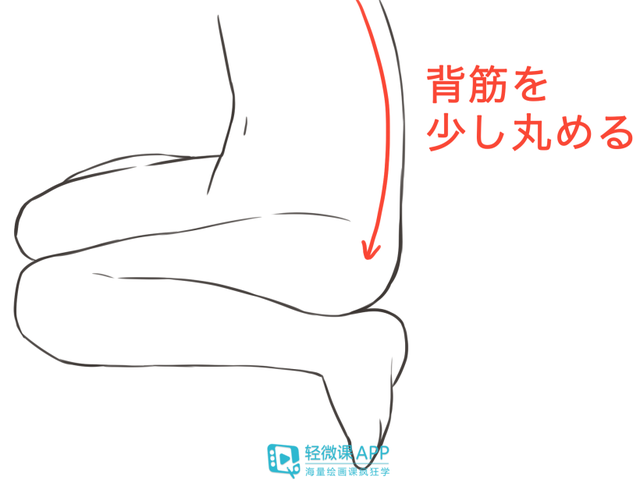 侧面看鸭子坐,大腿小腿相重叠,至于重叠的程度,则因视角的变化而变化。背部画出弧度,会显得更少女。