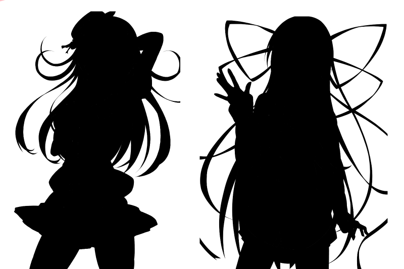 剪影的意思是,比起服装的花纹、刘海、面部零件,首先要决定发型、发饰、粗略的服装设计这就是说。