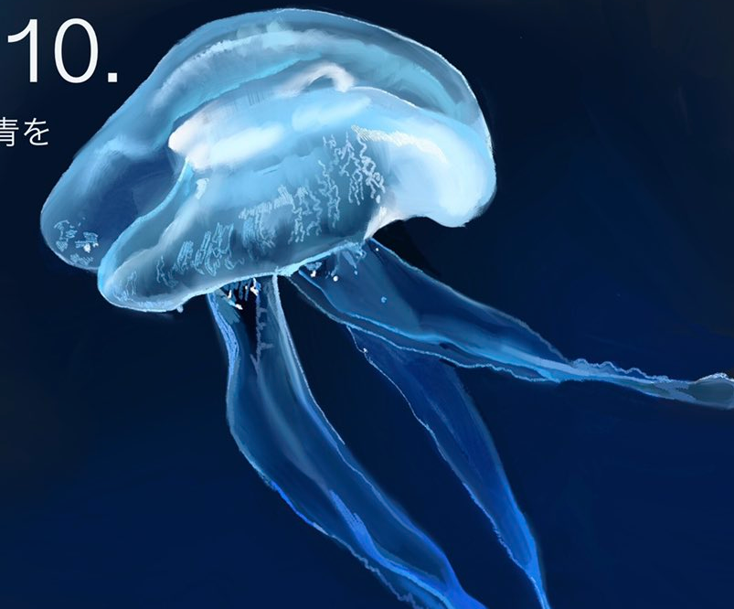 如果画上触手的话,在背景上画上蓝色,会有更透明的感觉。