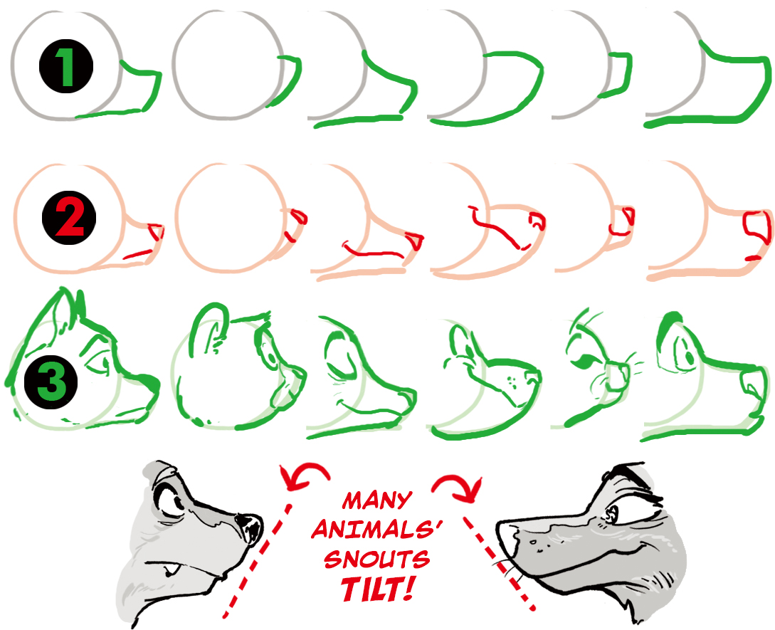 我们不会研究任何一种特定动物的解剖结构,而是会研究一系列在您自己的原始角色和生物上绘制鼻子的方法。