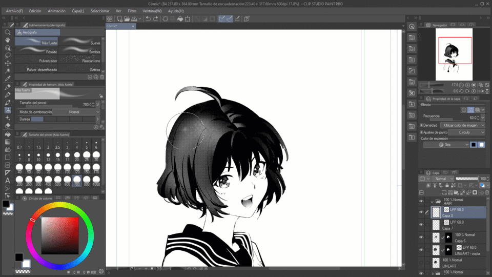 添加使用相同选项(灰度和屏幕色调效果)创建不同图层的详细信息。