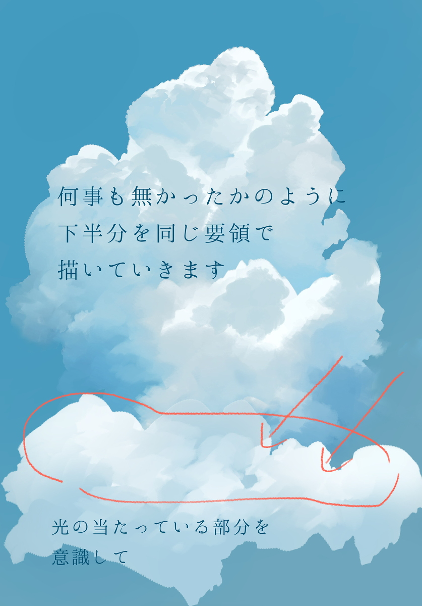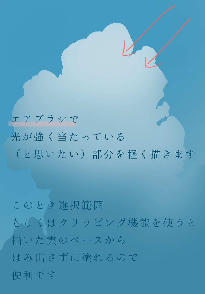 这个时候使用选择范围或者剪辑功能的话,可以不超出描绘的云的基础而涂上,所以很方便